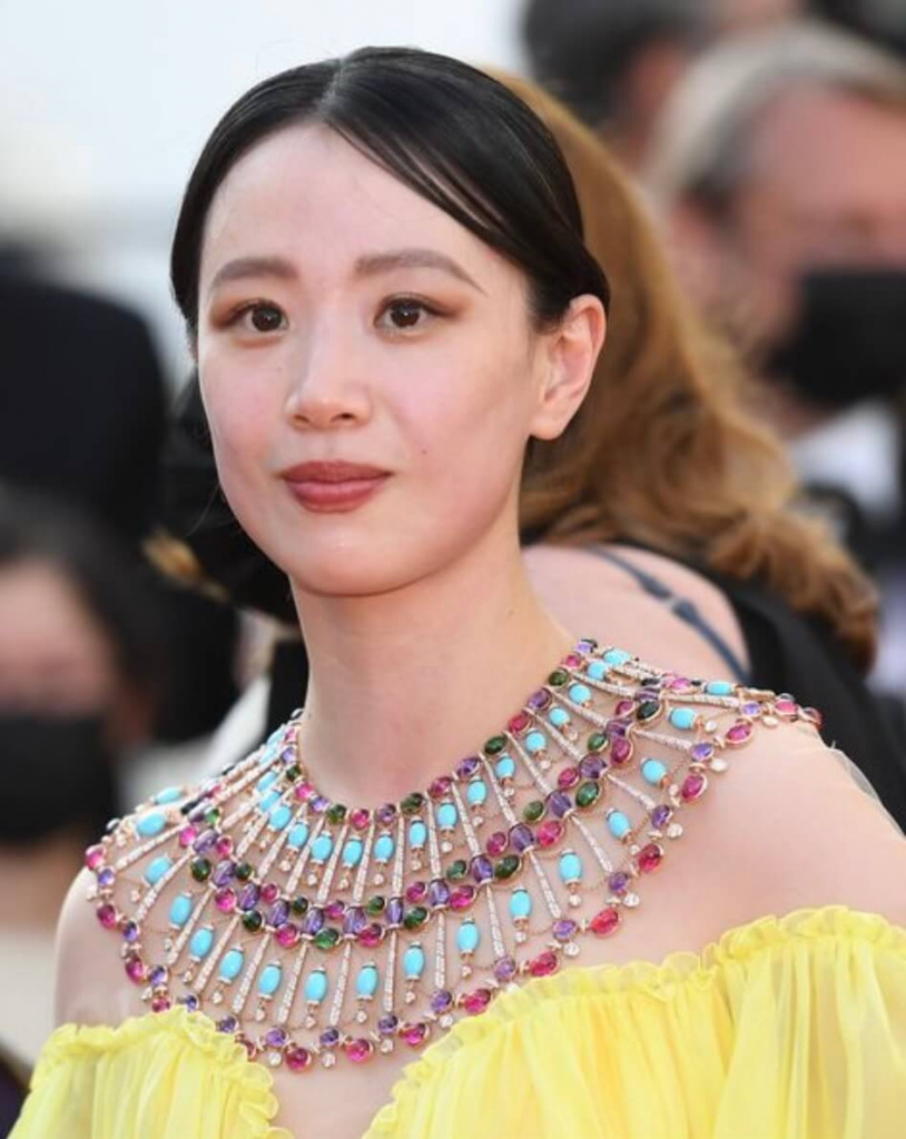 На съемочных площадках режиссеры иногда заставляют актрису предстать перед зрителем уродиной. Но в реальной жизни эта очаровательная особа с хорошим вкусом. К слову, актриса из фильма «Троица», в котором она сама выступала художником, продюсером, давняя поклонница украшений от Bvlgari. Потому и в Канны китаянка надела колечко из розового золота, декорированного перламутром.